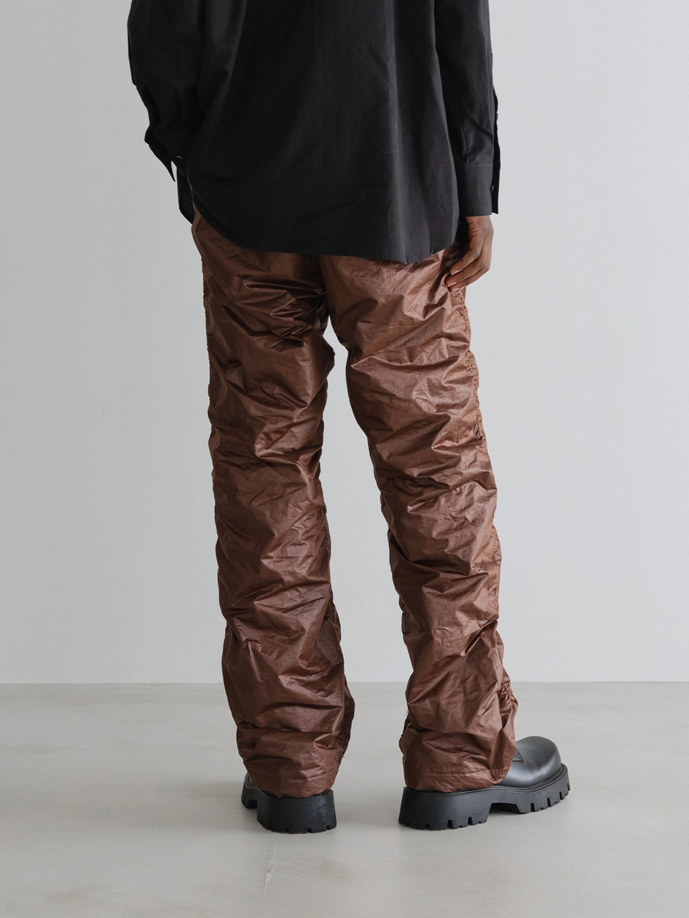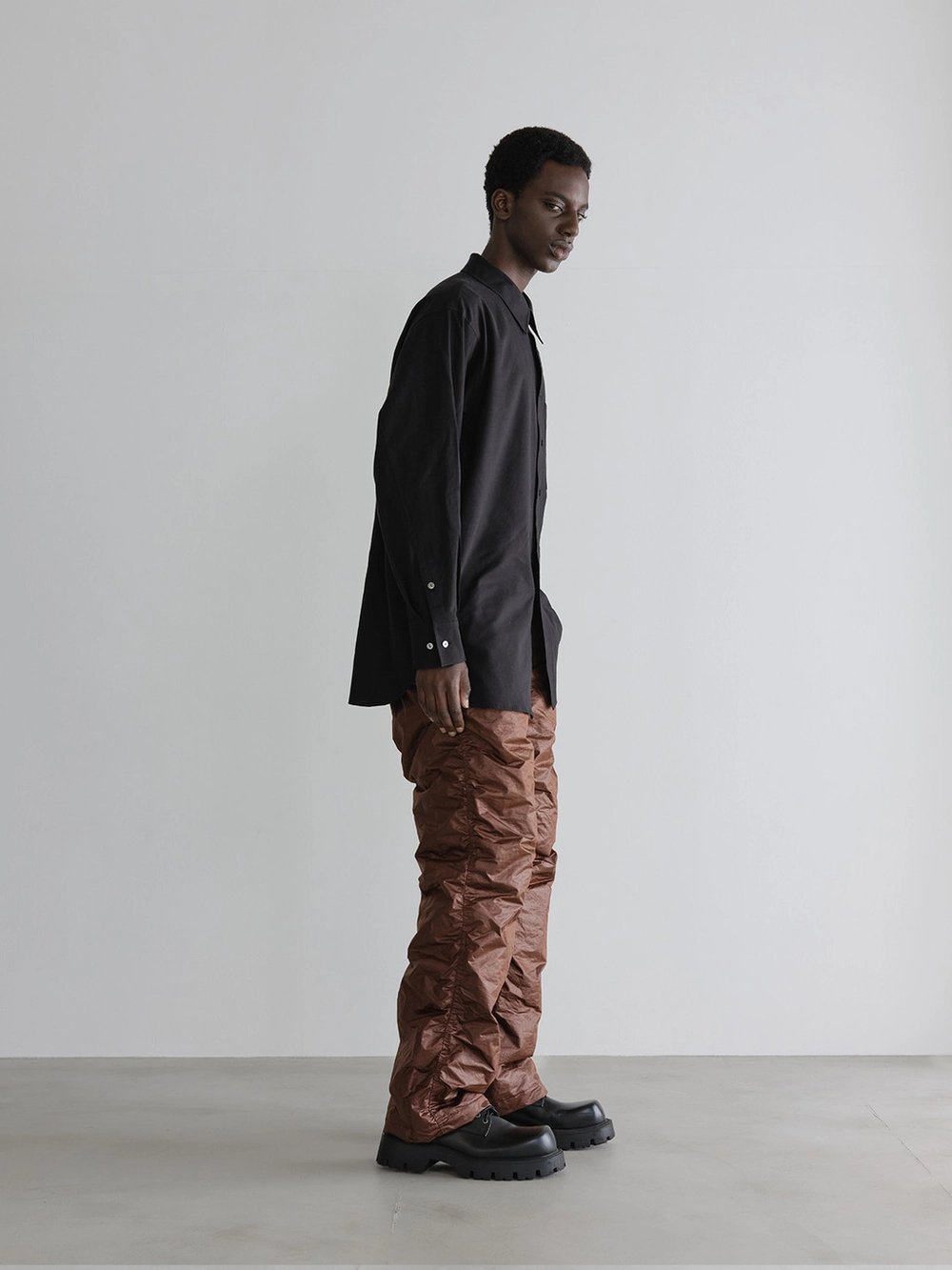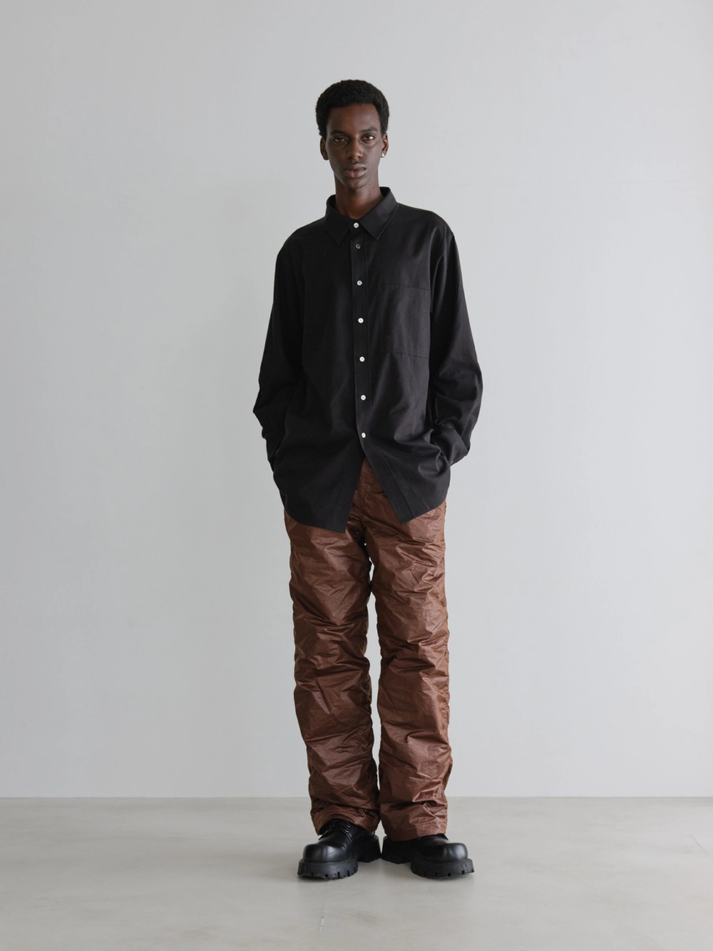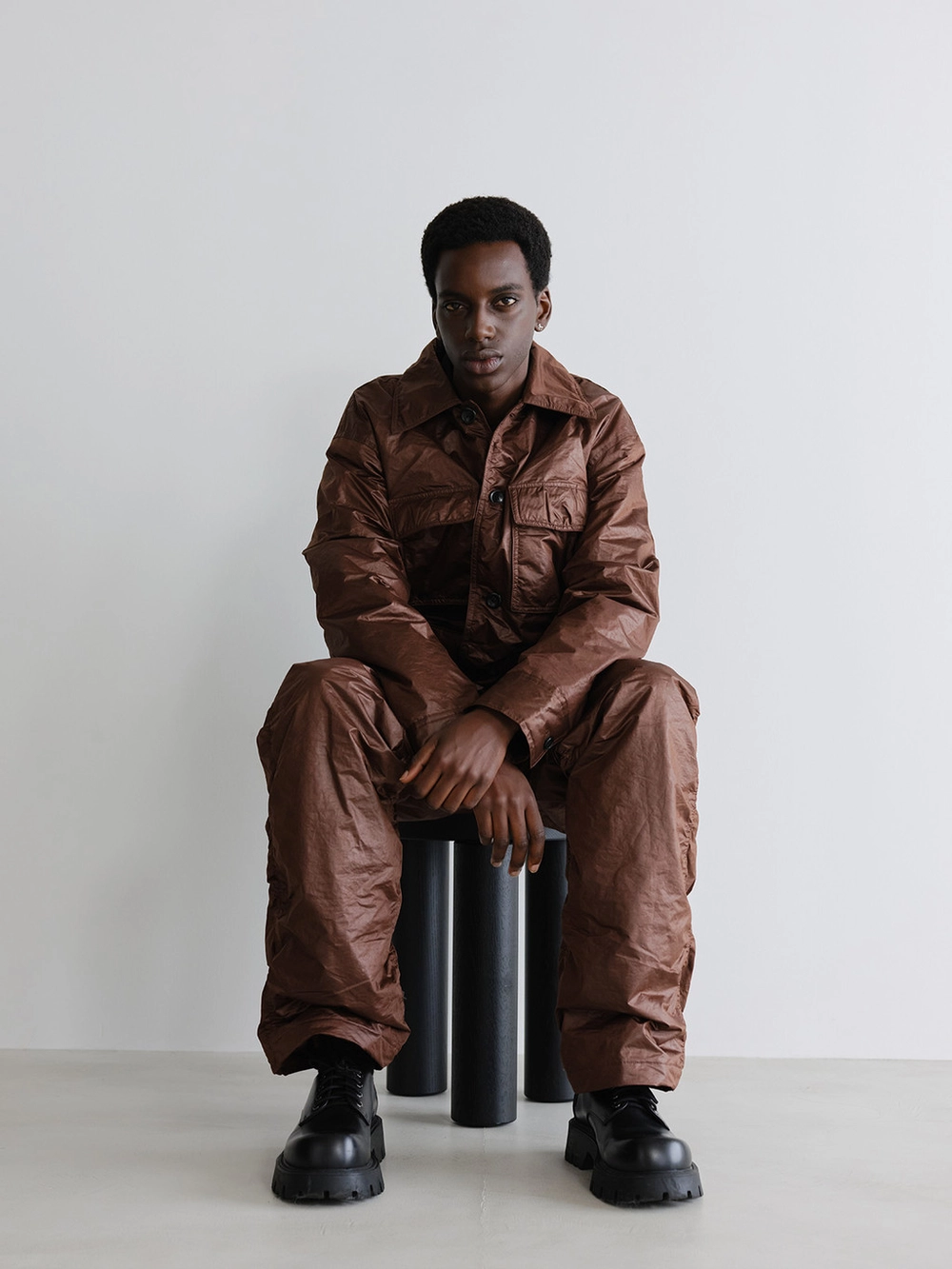 In the west wing of the NOT ON EARTH Laboratory, there is an old main lab surrounded by glass on all sides. We call this the Glass Room. Most of the agents working here are senior agents who have been with the lab for as long as the lab’s history itself. At some point, people began referring to the coats they wear as the Glass Room Coat. This coat features a relaxed silhouette and comfortable shoulder lines, with a subtle and unique tone of color and a pleasantly crisp texture. The long back slit and the NOT ON EARTH signature print patch on the lining add an artistic touch to the coat.