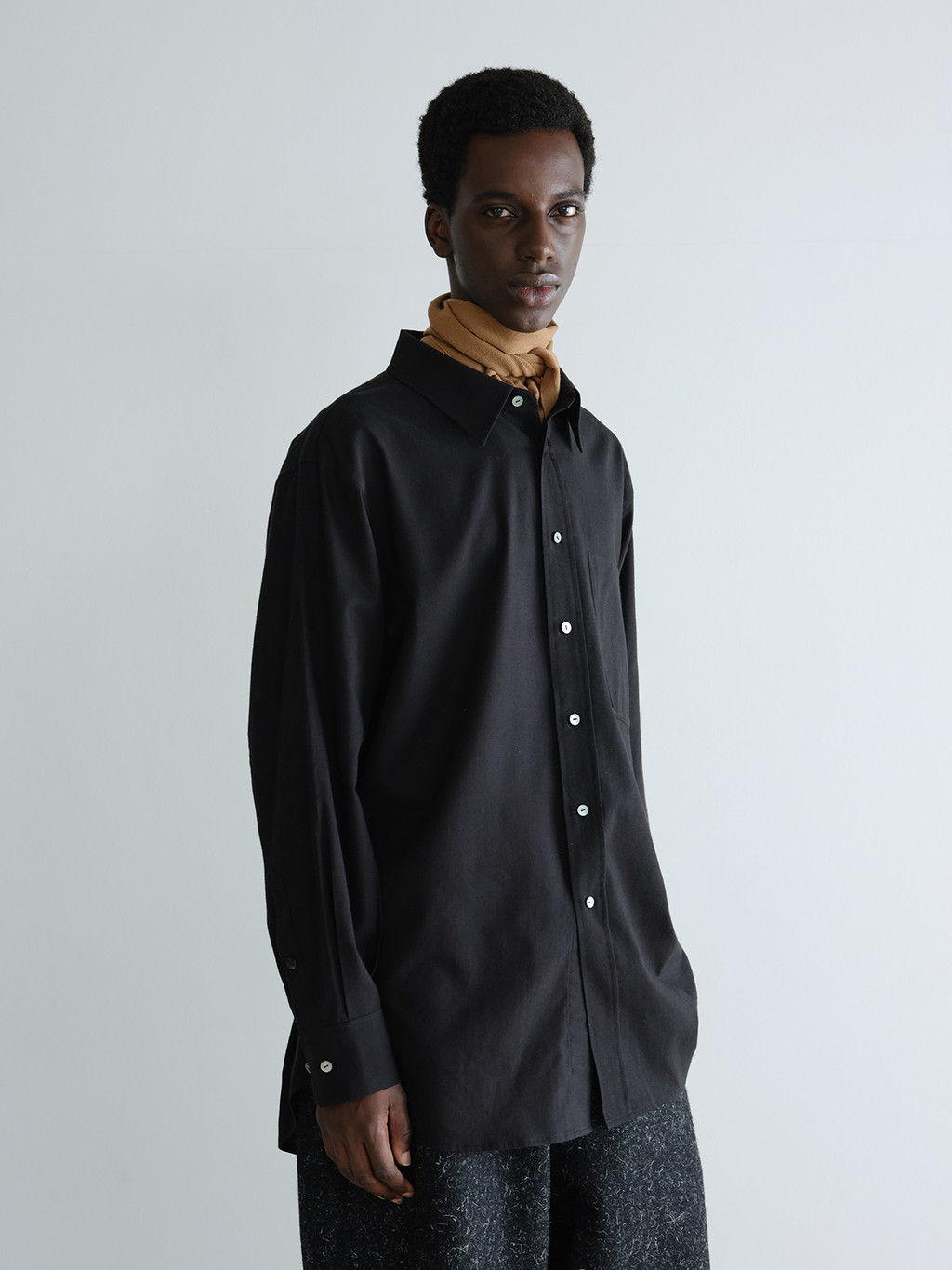 고급스러운 캐시미어 메리노울 혼방 소재를 독특한 형태로 만나보실 수 있는 낫온어스의 바라클라바입니다. 직선적인 밑단 형태가 특징적인 디자인으로 옆모습의 실루엣도 중세스럽고 독특한 무드를 자아냅니다. 포근하고 고급스런 터치감으로 편안하게 착용하실 수 있습니다.